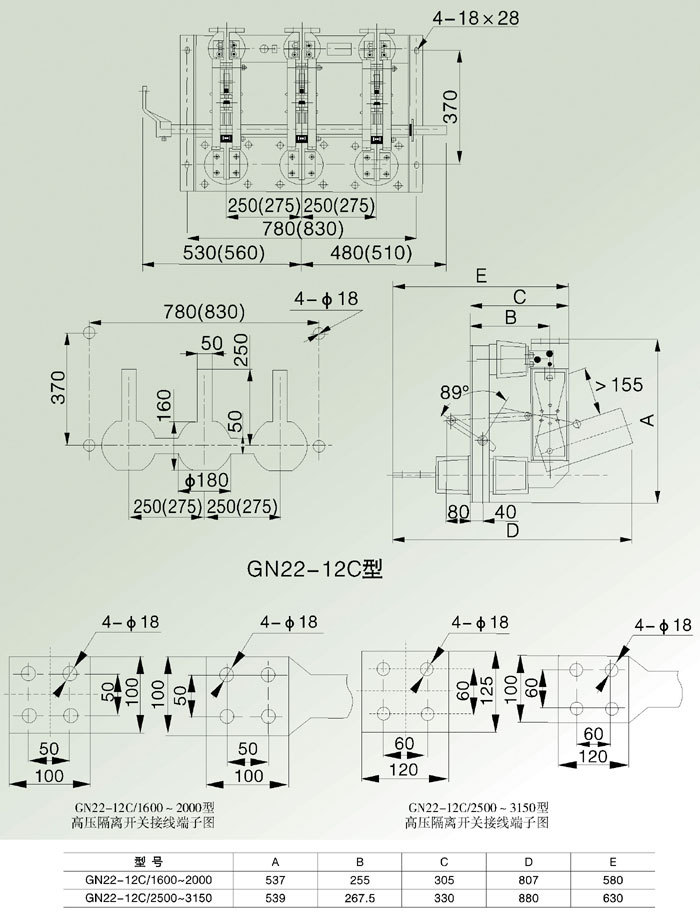 GN22-12(C)大電流產(chǎn)內(nèi)高壓隔離開關(guān),適用于額定電壓10KV,三相交流50HZ,電力系統(tǒng)中高壓開關(guān)設(shè)備作為有電壓無負(fù)載的情況下分合電路之用。開關(guān)結(jié)構(gòu)設(shè)計新穎、合理、獨具一格。它采用了兩步動作的鎖緊方式,使開關(guān)動熱穩(wěn)定性能優(yōu)異,操作力小。它采用了環(huán)氧樹脂和絕緣子及刷鍍銀等新材料新工藝,使開關(guān)導(dǎo)電性能好,體積小,質(zhì)量輕。它的出線端子便于與真空斷路器、油斷路器連接,可縮小開關(guān)柜體積,減少過渡接頭,降低成本。