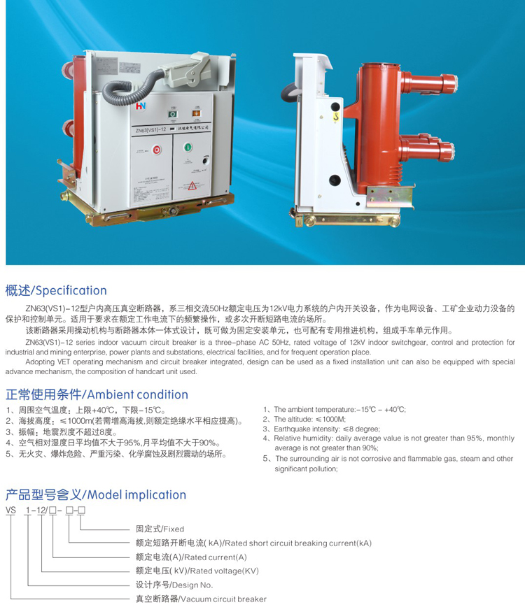 ZN63(VS1)-12戶(hù)內(nèi)真空斷路器