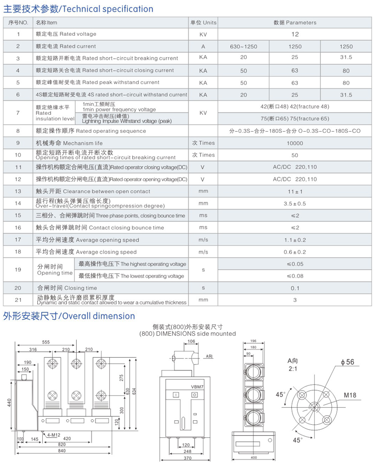 ZN63(VBM7)-12側(cè)裝式戶內(nèi)真空斷路器