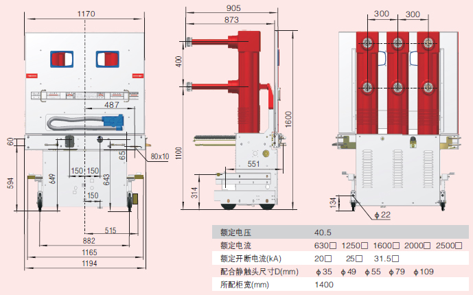 7.1 配KYN61一40.5 斷路器外形尺寸圖