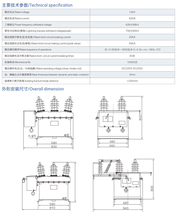 ZW8-12加高型戶外柱上高壓真..