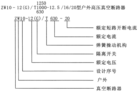 ZW10(ZW27)-12真空斷路器型號及含義: