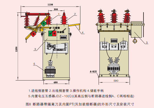 ZW8A-12是由ZW8-12斷路器與隔離刀組合而成的,稱為組合斷路器,可作為分段開關使用。